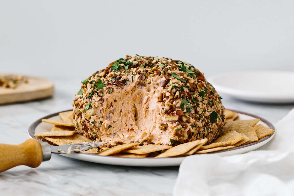 - Roll the cheese ball into the pecans, until the entire outside is coated.
