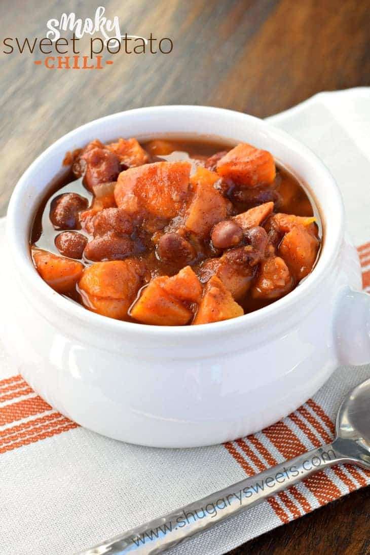 A delicious, hearty meal with NO meat. This vegan Smoky Sweet Potato Chili is the perfect comfort food!