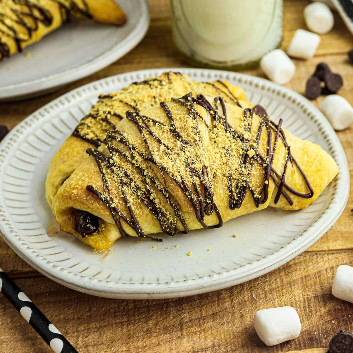 These S'mores Crescent Rolls feature gooey marshmallow and melted chocolate all wrapped up in a crispy crescent roll! Easy 4 ingredient dessert.