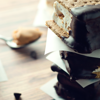 - While the ice cream base is churning, spread the mini marshmallows on a silicone baking mat, or another heat-resistant surface that’s non-stick. Wave a blowtorch over the marshmallows carefully, just enough to brown them. Turn them over with a spatula and continue to brown the marshmallows until they’re well-browned all over, as best as possible.