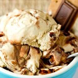 - Churn the Ice Cream: Before churning, whisk the custard vigorously until it is smooth and has a pourable consistency (it will be a little spongy when it first comes out of the fridge). Freeze in your ice cream maker according to the manufacturer's directions. When it's done churning, gently fold in the chopped graham crackers with a rubber spatula. Spoon some of the fudge swirl onto the bottom of the storage container. As you remove the ice cream from the machine, layer generous spoonfuls of the sauce between layers of the ice cream, ending with a top layer of ice cream. Do not stir the fudge into the ice cream, as it will make the ice cream muddy looking. Freeze until the ice cream is firm, at least 2 hours.