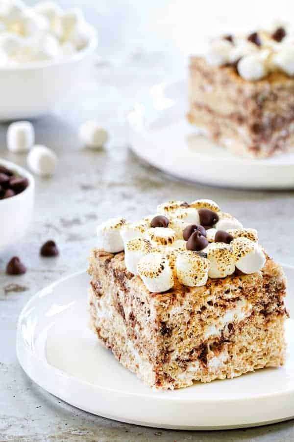 S’mores Marshmallow Crispy Treats are a fun twist on a classic dessert. Loads of marshmallows, graham cracker crumbs, and chocolate makes them a simple and delicious dessert for any occasion.