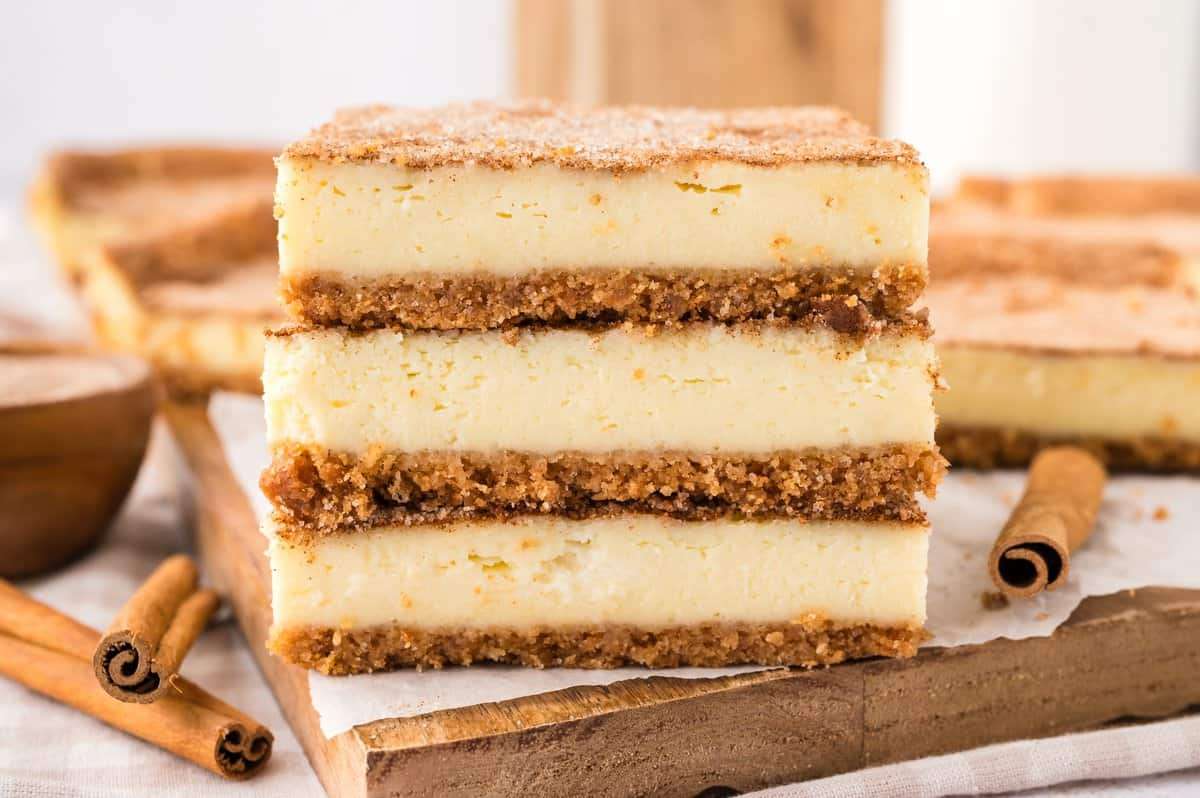 Snickerdoodle Cheesecake Bars are made with a graham cracker crust and a sweet cheesecake filling with a cinnamon sugar snickerdoodle topping!