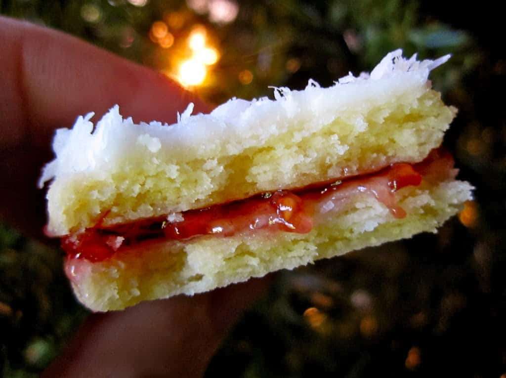 Scottish Snowballs (Raspberry Jam Sandwich Cookies Dipped in Coconut)