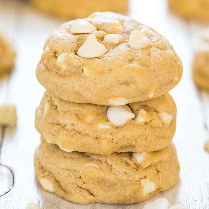 These soft and chewy white chocolate chip cookies use two special ingredients to achieve their pillowy texture: instant pudding mix and cream cheese!