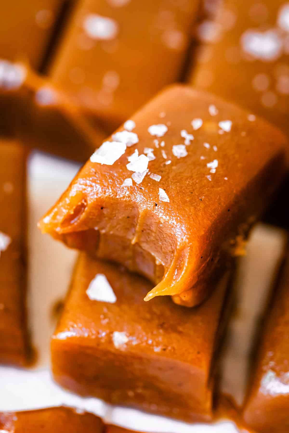 I've had my fair share of ho-hum Caramels. Caramel is all about the texture, and too often, wrapped caramels are hard to bite into, locking your jaw in place, pausing all conversation. Even if the flavor is good, it doesn't make up for the unpleasant chewing experience. THIS recipe, however, is absolute perfection. My homemade caramel candies are made with dark brown sugar, which is a little counter-culture in the caramel world. The flavor is exceptional. The best part? The texture and softness of these caramels will knock. you. out. I'll show you how to make them!
