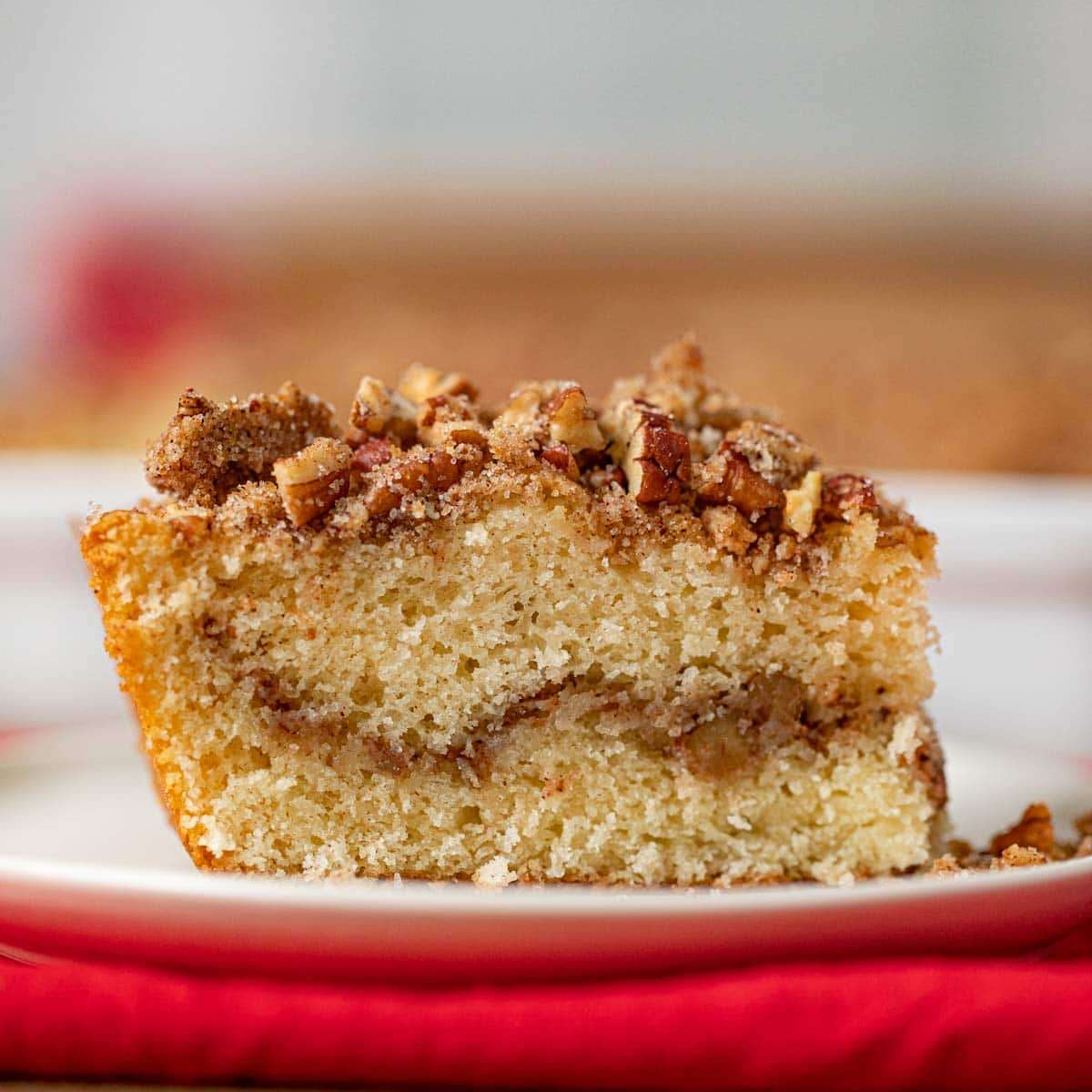 This Sour Cream Coffee Cake is the easiest classic coffee cake recipe. Melt-in-your-mouth rich, buttery coffee cake with brown sugar pecan streusel topping.