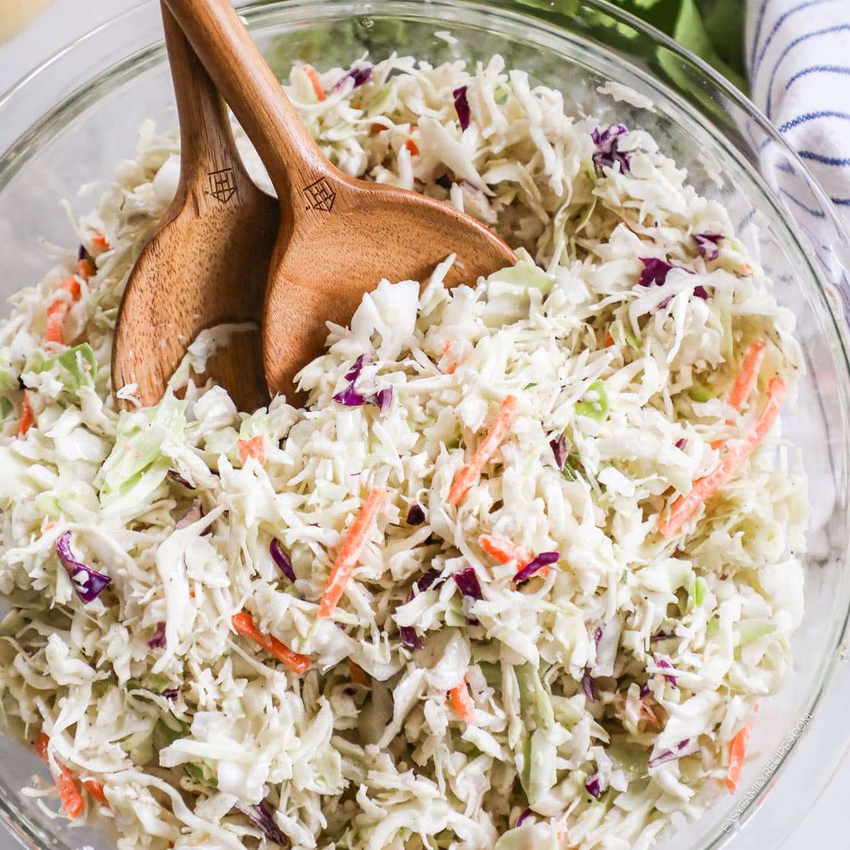 This homemade coleslaw features crisp shredded cabbage in a tangy and creamy dressing for a classic side that everyone will love!