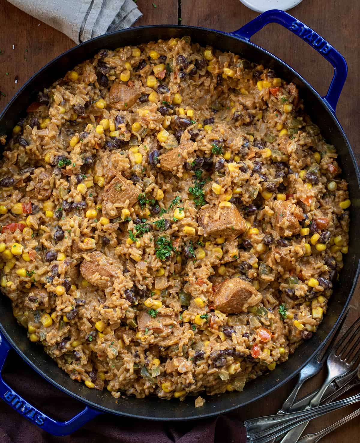 Southwest Chicken and Rice is a flavorful dish made with a blend of spices, tender chicken, rice, and a variety of vegetables. And, it's all cooked in one skillet making this a convenient and delicious one-pot meal!
