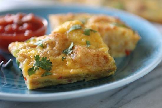 - Bake at 350 degrees for 30-35 minutes or until cheese is melted and egg casserole doesn't jiggle. Top with cilantro and cut into pieces. Serve warm.