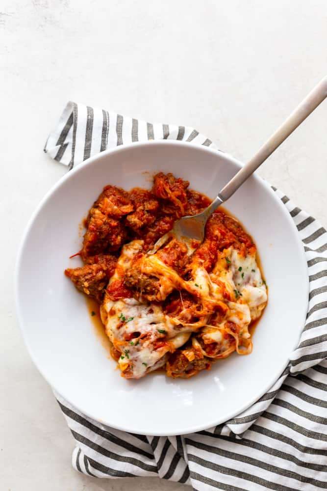 - Transfer spaghetti squash mixture to a large casserole pan.