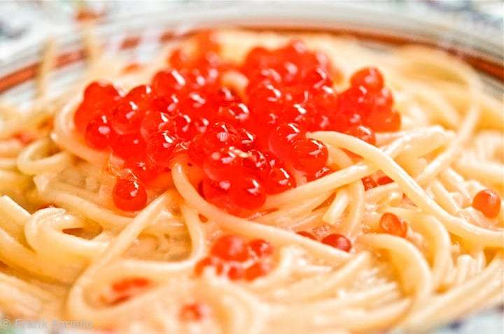 - Serve in pasta bowls and top each portion with the remaining salmon roe.