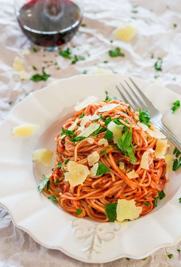 This spaghettini in blush sauce is a simple pasta dish yet packed with flavor. It’s saucy, it’s creamy, it’s dinner!