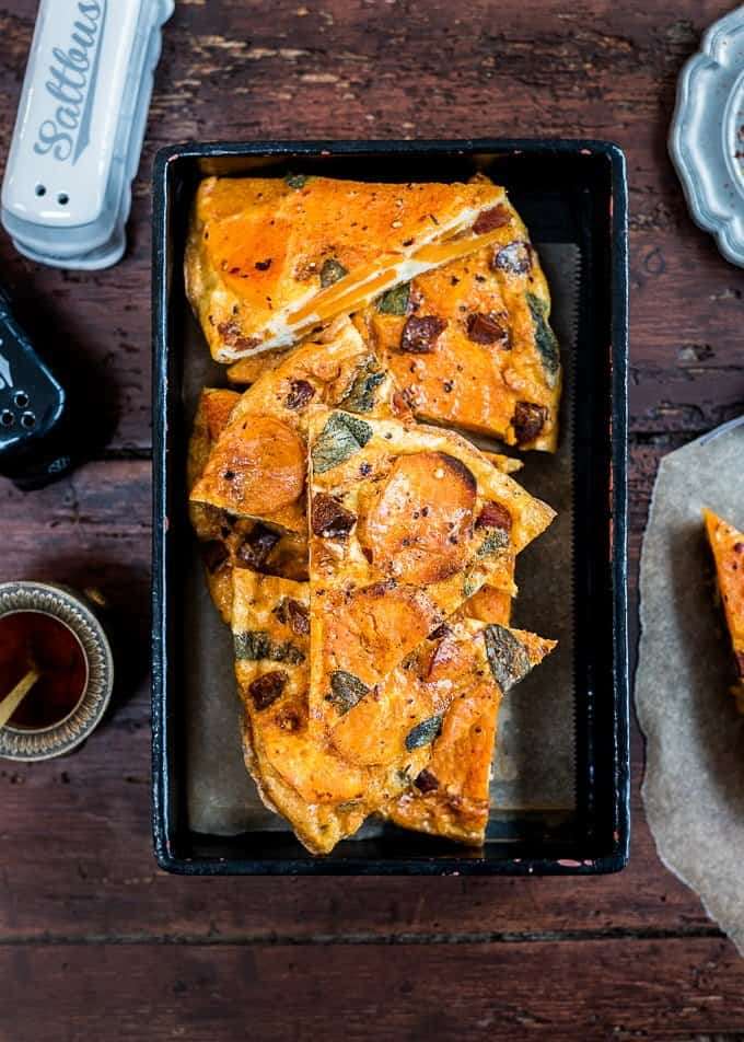 Spanish tortilla with chorizo, sweet potatoes and squash