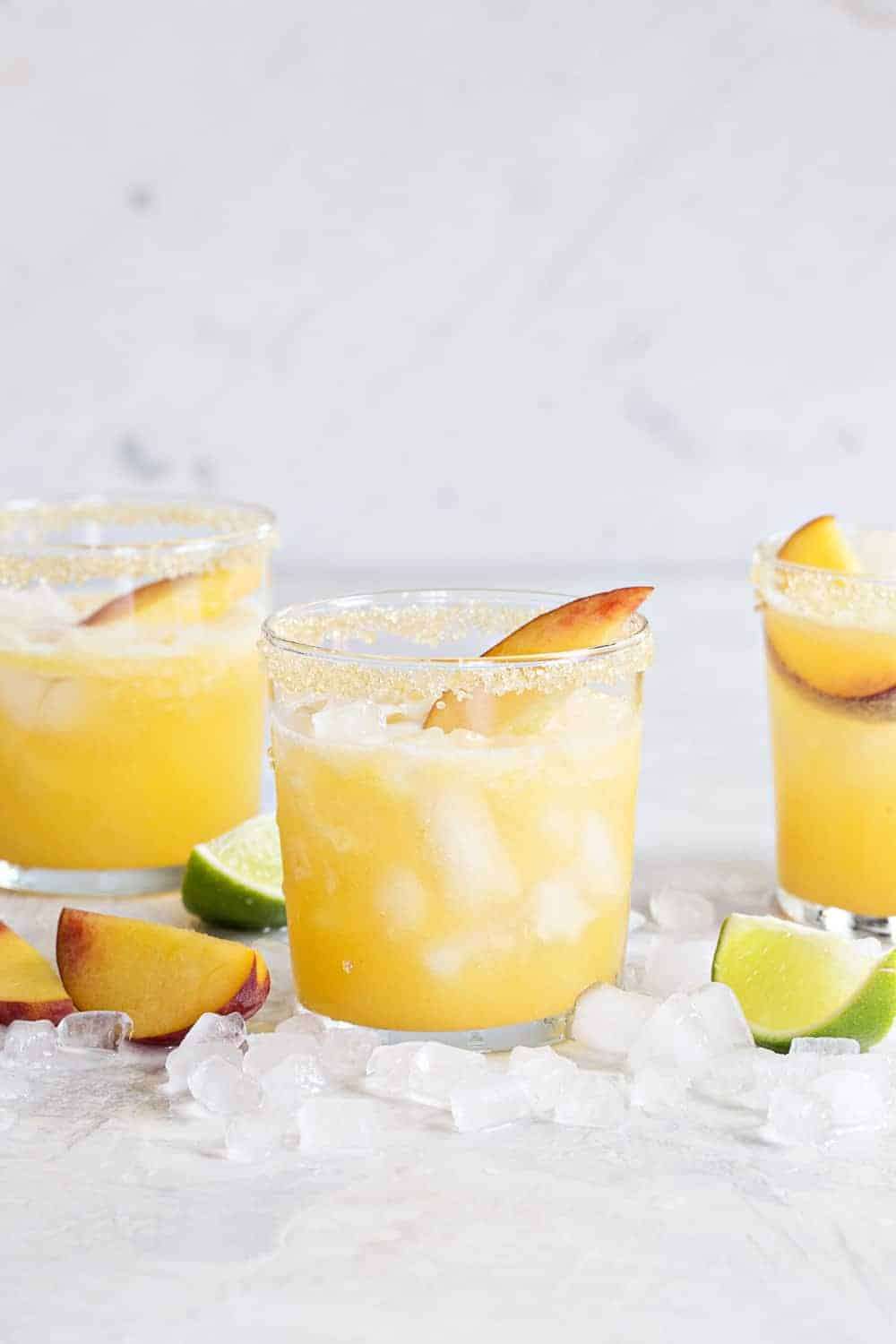 Sparkling Peach Margaritas are the perfect way to celebrate summer. They’re light, sweet and bursting with fresh peach flavor!