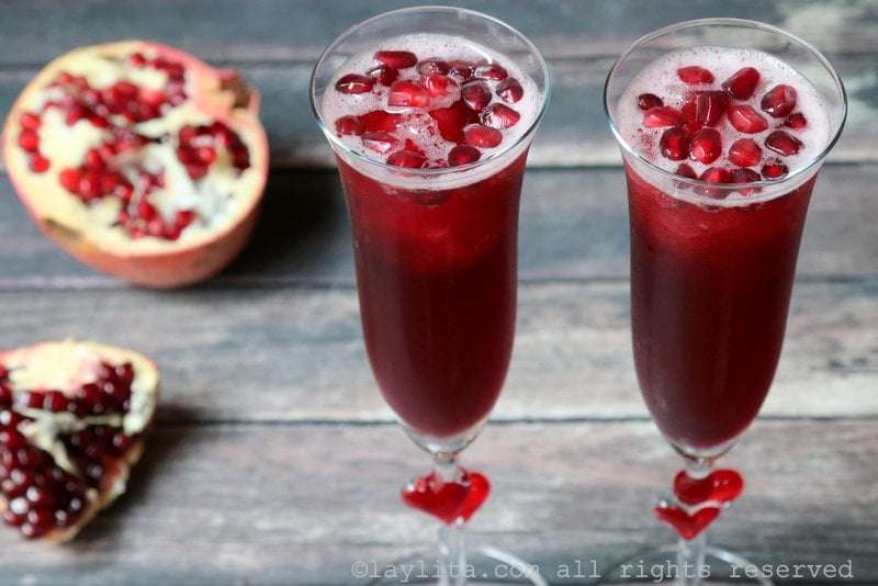 Sparkling pomegranate cocktail made with pomegranate sorbet or granita, tequila, and champagne or sparkling wine.