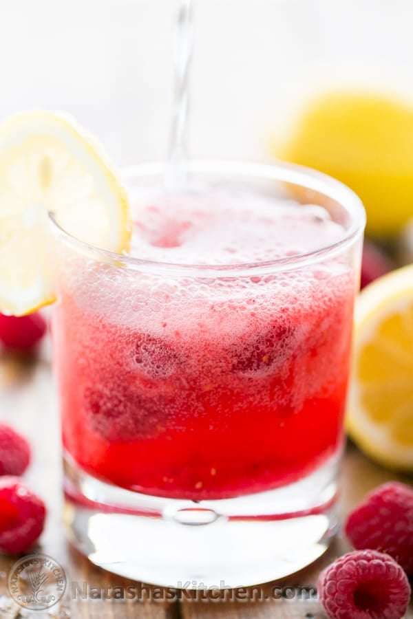 - Note: If you want to make individual cups, add ice to a tall glass then top with 1/3 cup of raspberry syrup and gently pour in 1 cup club soda then toss in some raspberries and a slice of lemon for vacation effect ;)