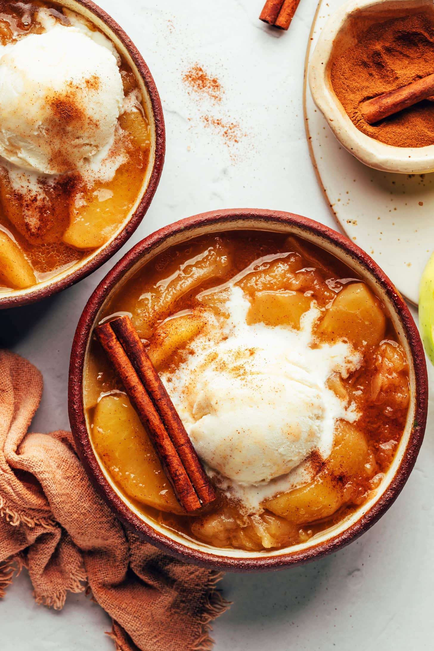 - Gently stir the apples. Then serve warm as a side dish with chicken or pork chops, or as a topping for ice cream or pound cake.