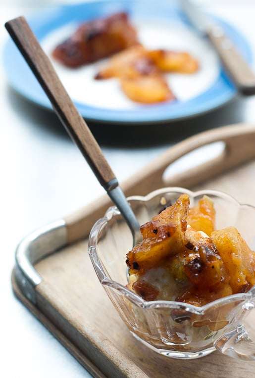 - Storage: The caramelized pineapple can be stored in the refrigerator for up to 5 days. It can be rewarmed before serving in the oven, covered to preserve the juiciness, if desired.