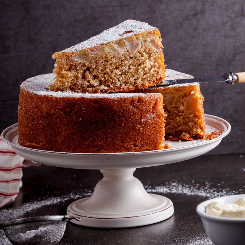 Rich, buttery spiced pear butter cake is an easy, delicious recipe perfect as a tea time treat served with a dollop of sweetened whippe cream.
