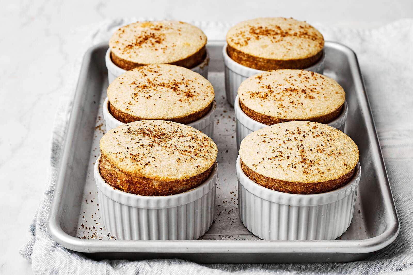 - Spoon the mixture into the ramekins, level the top with a knife, and bake for 11 to 14 minutes, until slightly puffed up and lightly golden on top. Serve immediately.