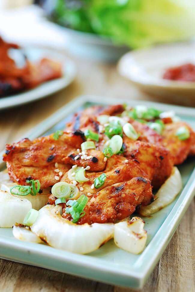 Chicken thighs marinated in a spicy, flavorful Korean marinade and grilled to perfection!