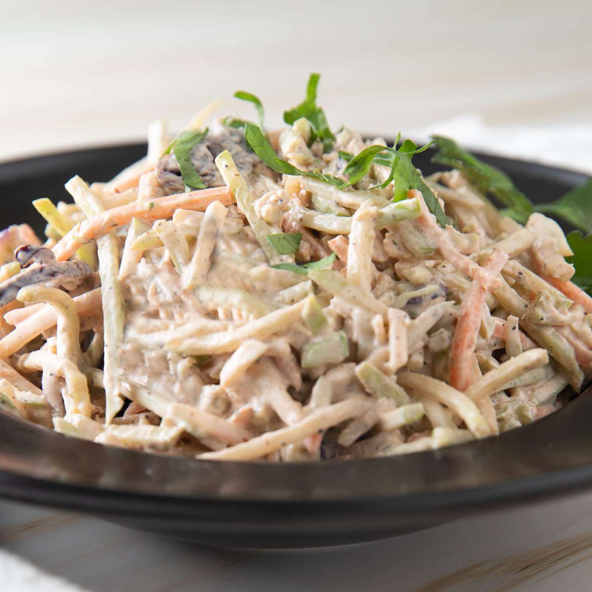 - Add the dressing a little at a time. Then mix the coleslaw up and test it. Add more, if needed to get it as creamy as you like.