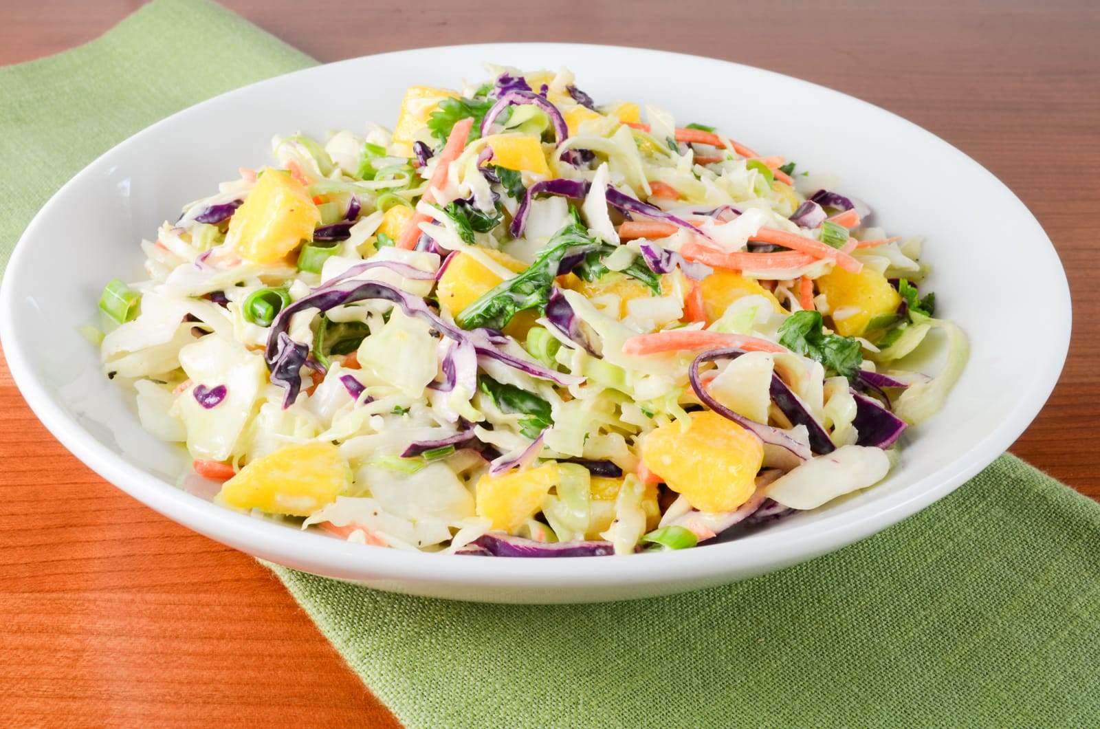 - Toss with the coleslaw mix, mango, green onion, and cilantro. Season with sea salt and freshly cracked pepper, to taste. Serve immediately. Enjoy.
