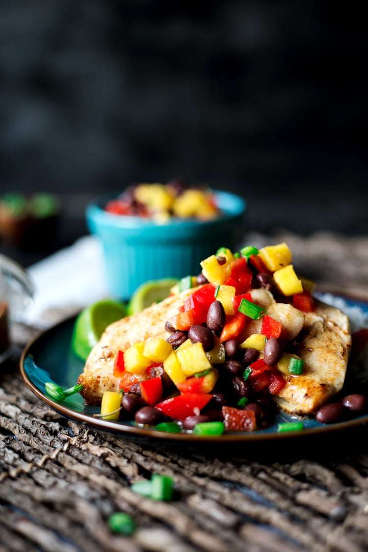 Spicy Salt and Lime Black Sea Bass with Mango and Black Bean Salad