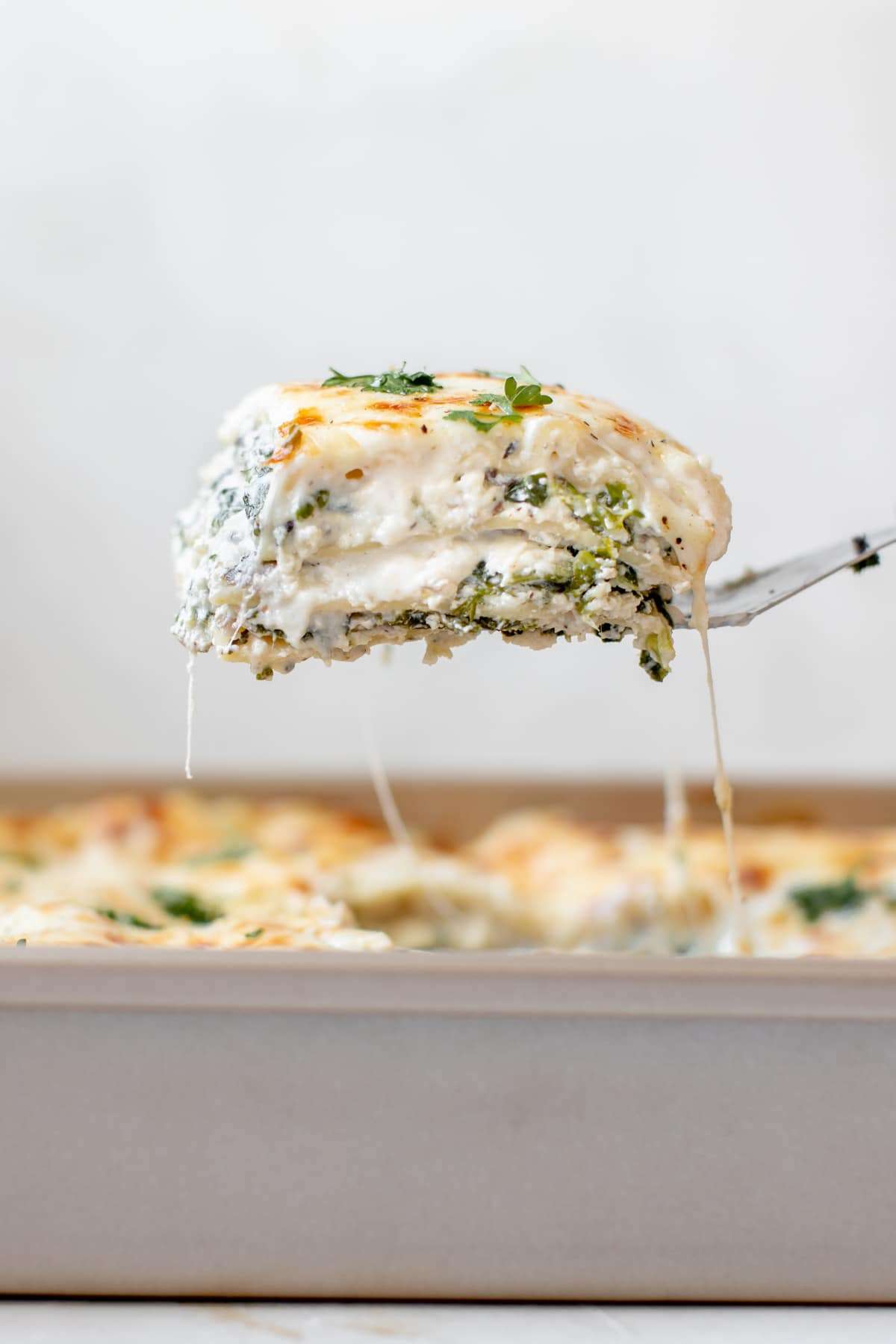 - Add chicken or Italian sausage: If you want to add animal protein, feel free to add shredded/cubed chicken or Italian sausage crumbles to the recipe. I would add it after the spinach-mushroom layer.
