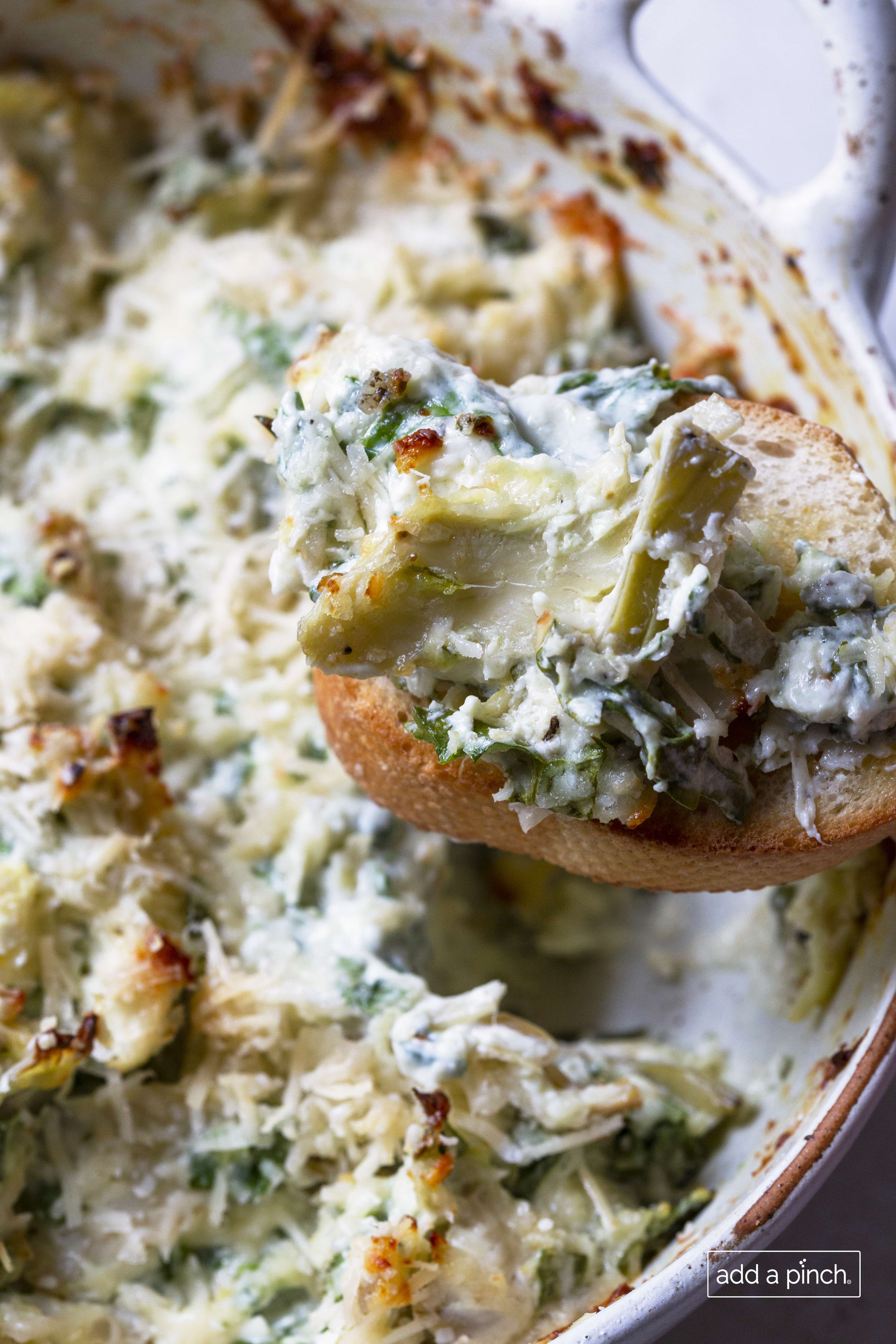 This hot Spinach Artichoke Dip recipe is easy, cheesy, and delicious! Bake in the oven or make crockpot spinach artichoke dip in your slow cooker! Make ahead and freezer-friendly. It's a crowd-favorite dip and perfect for entertaining!