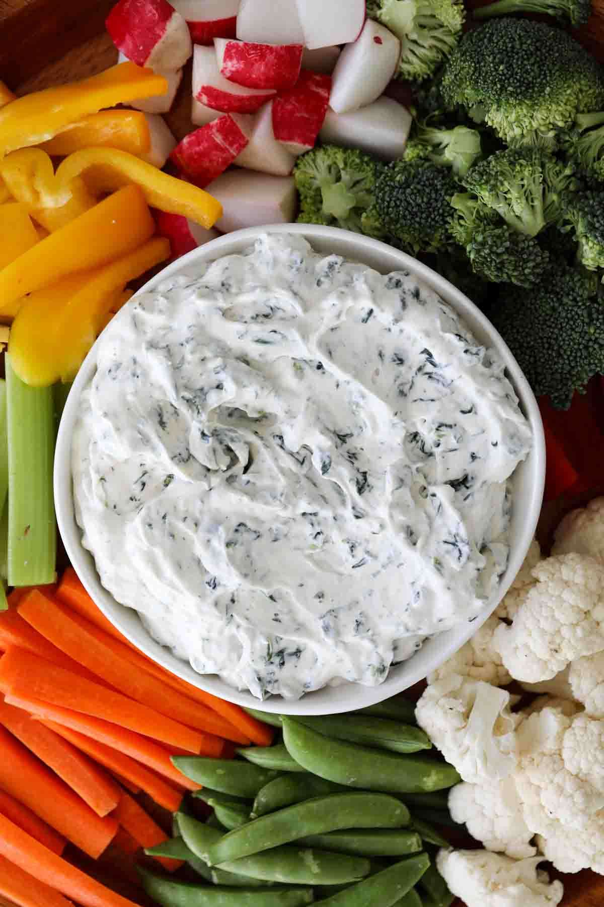 An easy party dip, this Spinach Dip Recipe only takes a few minutes to assemble and is always a crowd pleaser. Best served with fresh vegetables, tortilla chips or slices of baguette.
