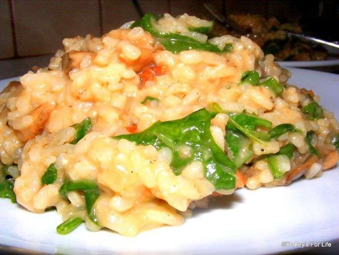 - Risotto is traditionally made with starchy Italian Arborio rice. In Turkey, the rice is starchy so we use Baldo pirinç.