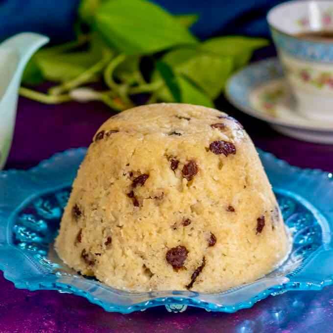 - Retirer le pudding en plaçant une assiette sur le dessus du moule, puis en le retournant.