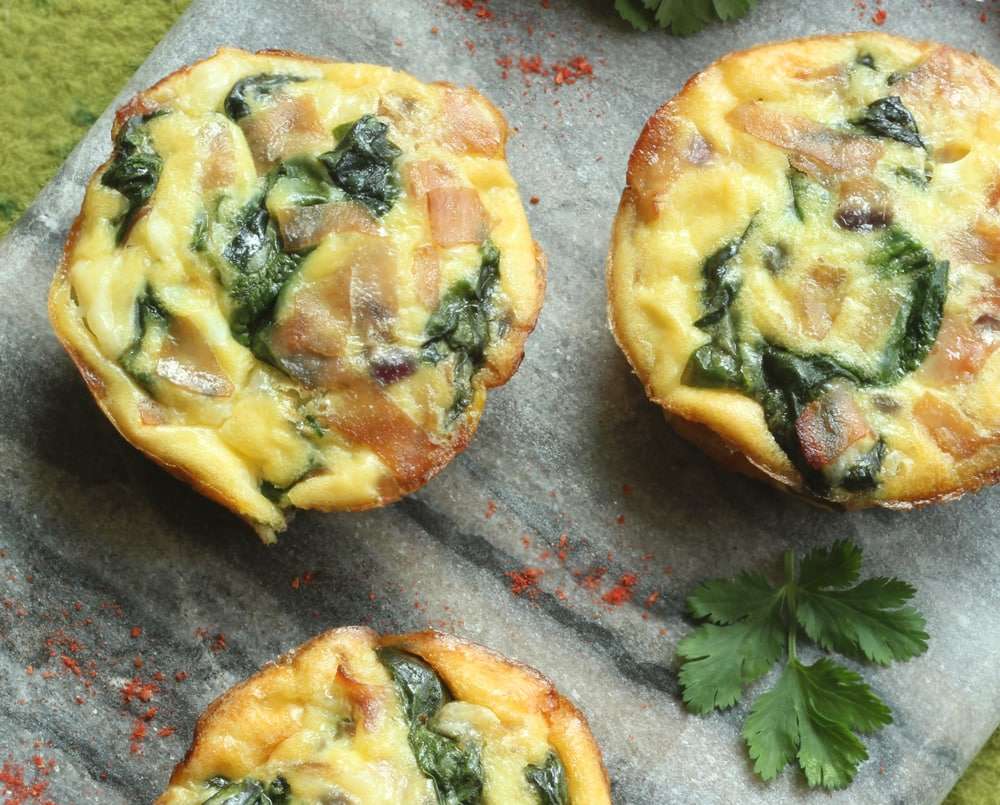 - Spray with oil a non-stick muffin tin. Divide the frittata mixture evenly, filling ⅔ of each mold.