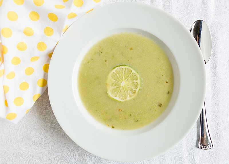 - Remove soup from heat and puree with an immersion blender until mostly smooth. Mix in lime juice.