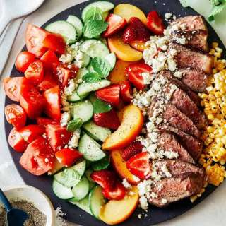 Delicious Steak Salad recipe for a hearty steakhouse salad with juicy steak strips, crisp greens, fresh veggies and creamy homemade dressing.