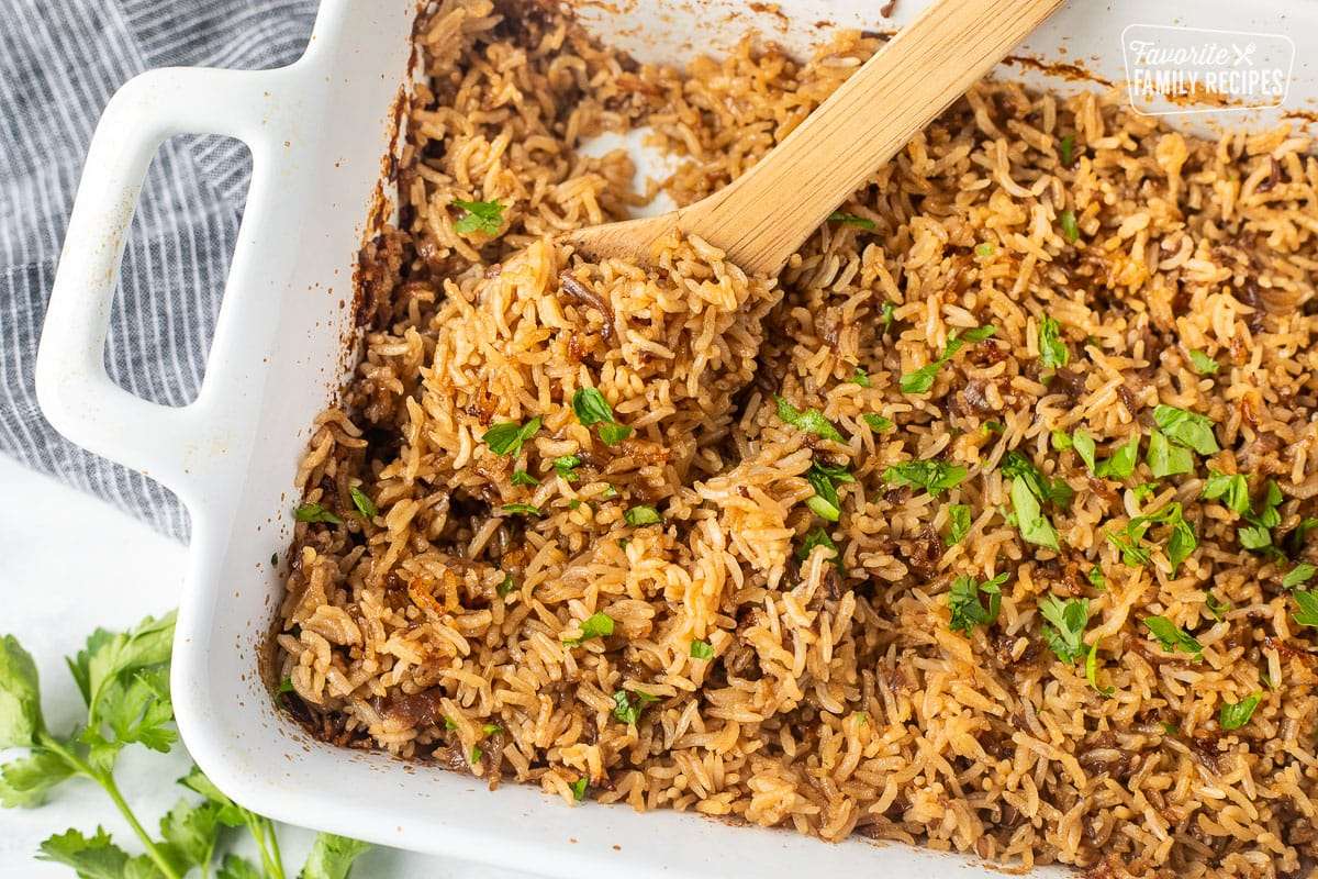 Make Stick of Butter Rice in the oven with just 4 pantry staples! It’s the perfect side dish that pairs well with just about anything!