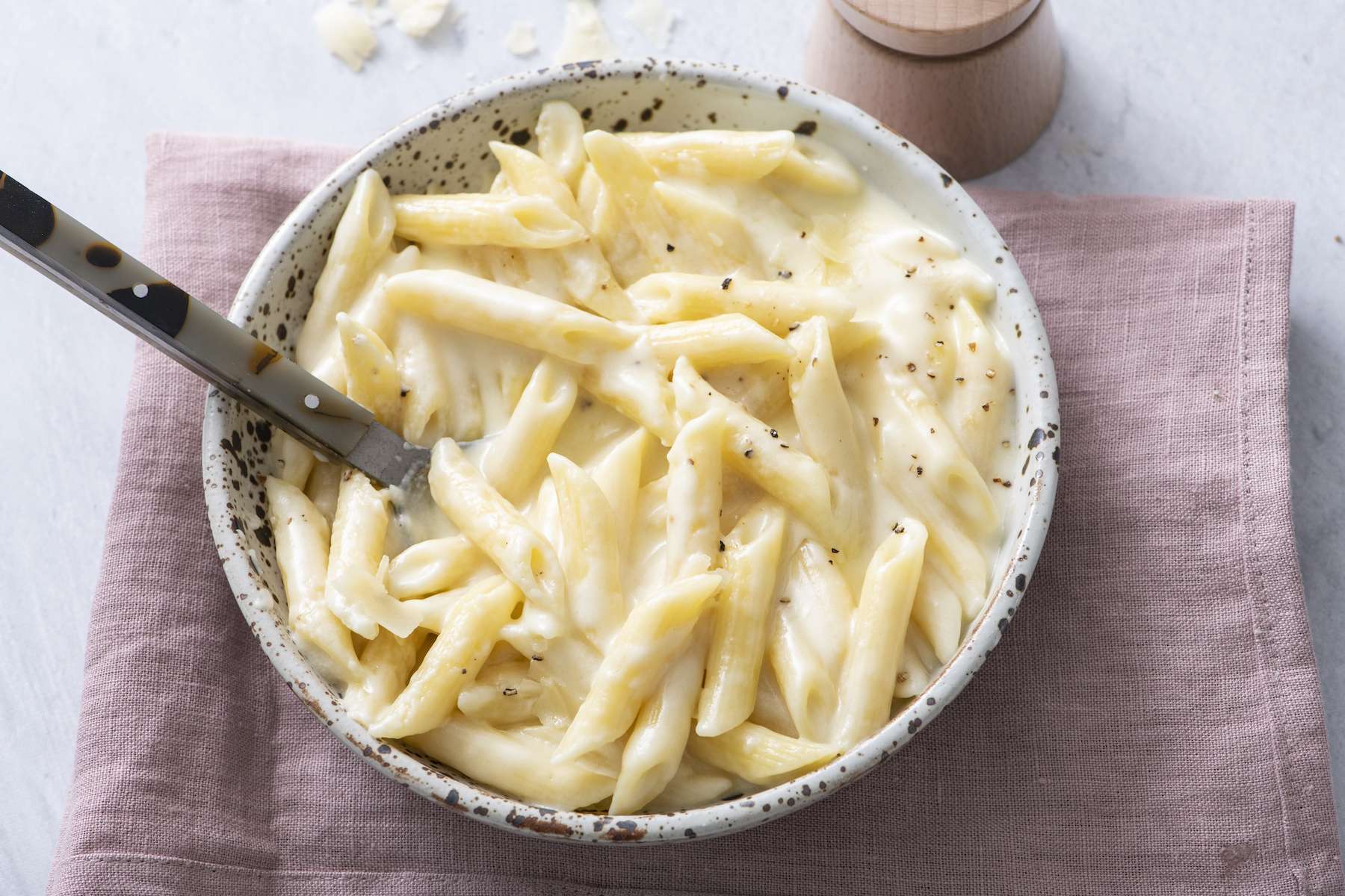 - Add the grated cheese and whisk until melted. Stir in the pasta and spring vegetable and coat the pasta throughly. The vegetables will warm during this process. If sauce is too thick add a little pasta water to loosen.