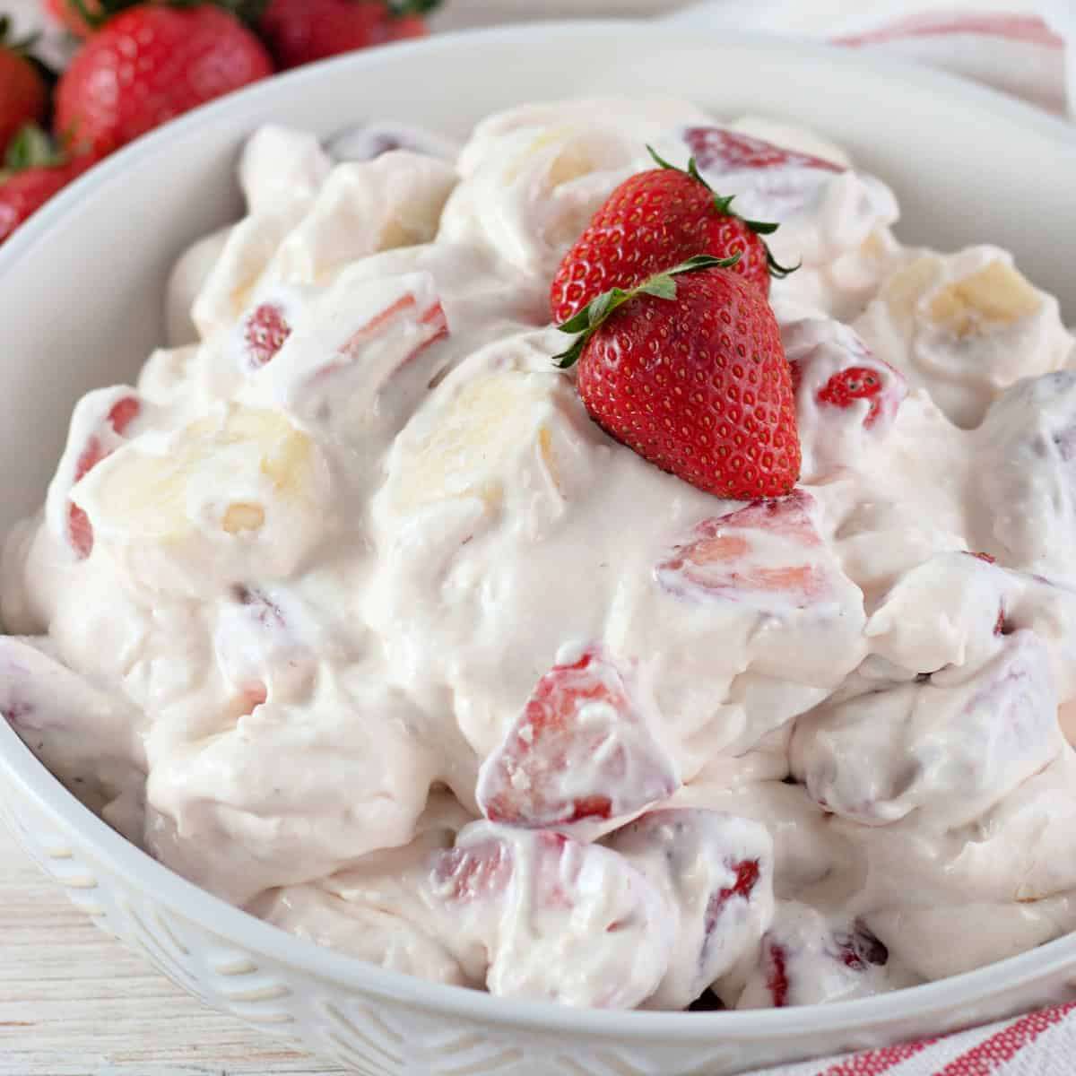 If you love fruit and cheesecake, then you are going to love this Strawberry Banana Cheesecake Salad using only 6-ingredients!