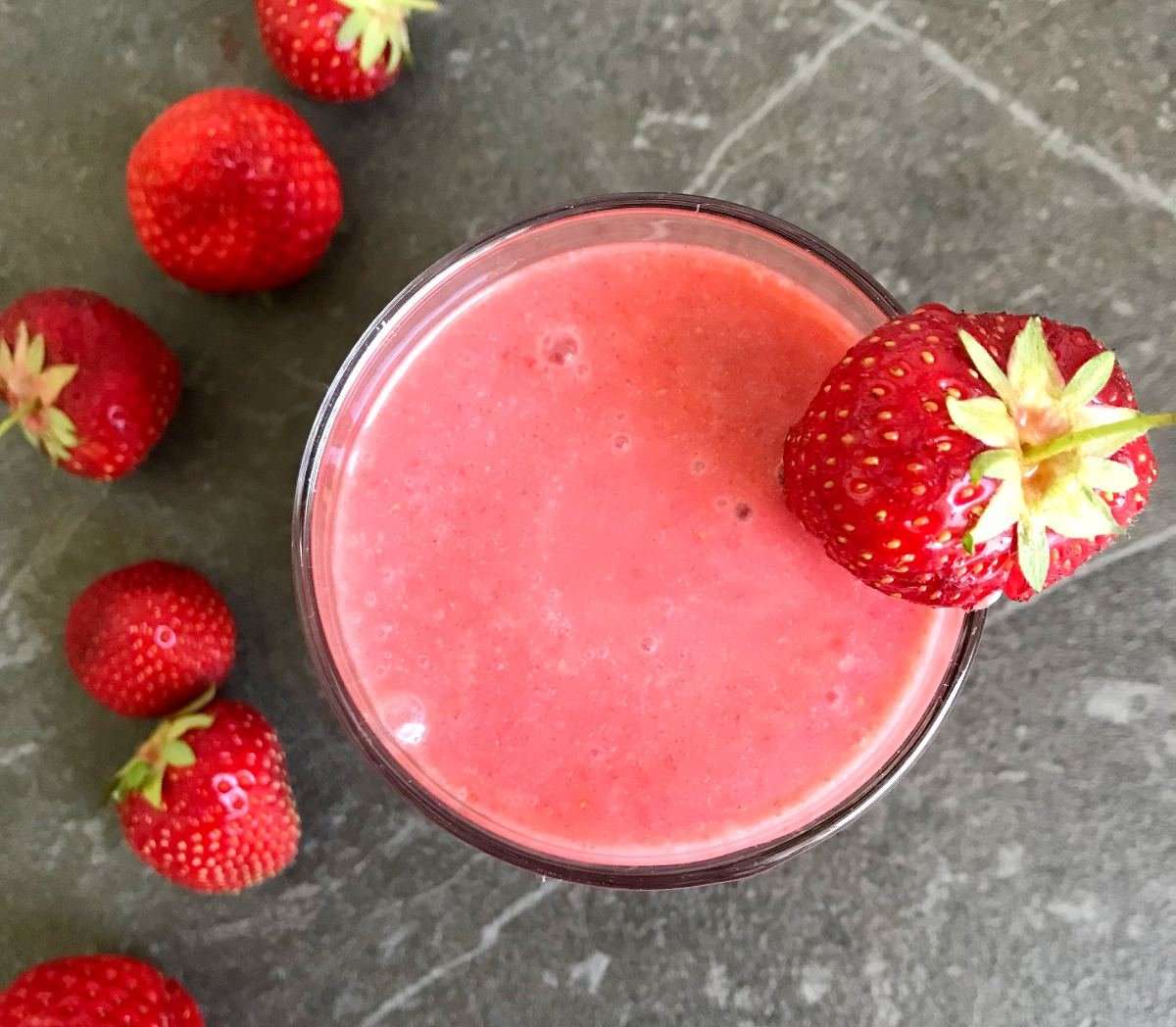 - Pour into glasses and garnish with a strawberry and mint (optional). Serve.