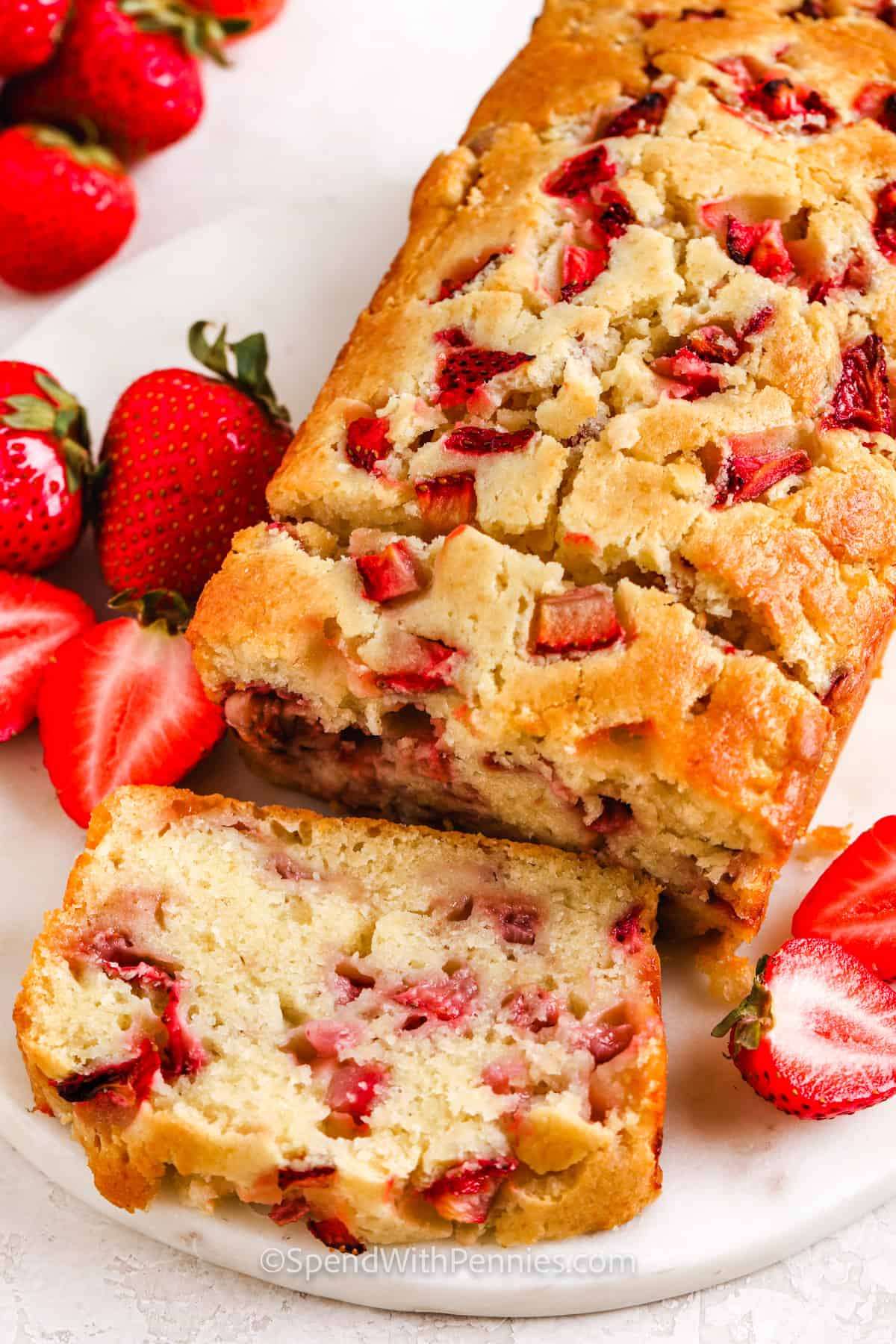 Moist and sweet strawberry bread with a delicious glaze makes a great breakfast, snack, or even dessert!