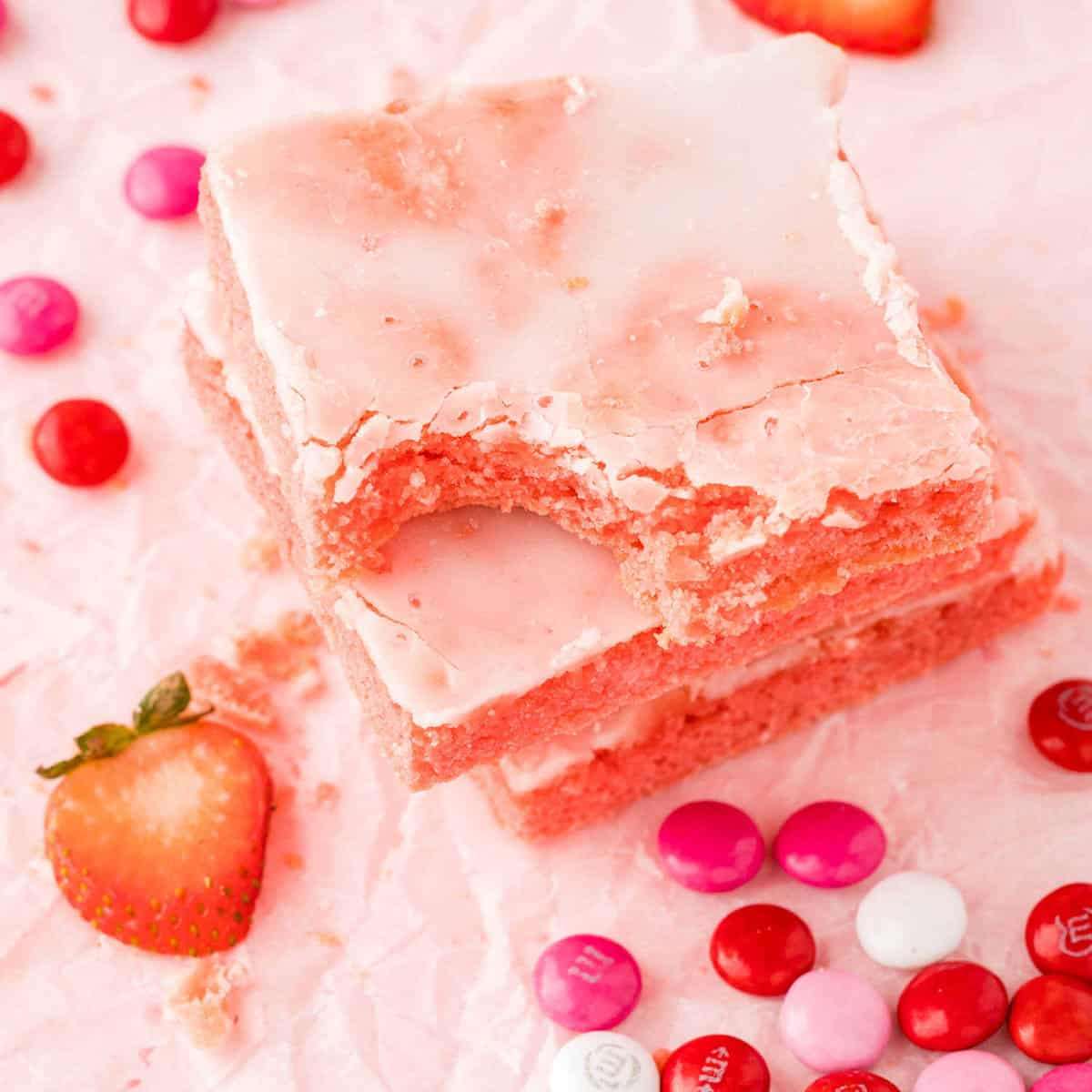 Rich, fudgy Strawberry Brownies start with a strawberry cake mix and are so easy to make with a delicious homemade strawberry glaze on top!
