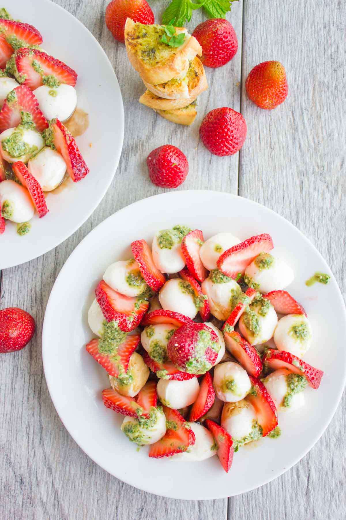 - I’ve had success making this Strawberry Caprese Salad using whole strawberries and stacking each strawberry with a ball of cheese on a toothpick. It makes for the perfect finger food.