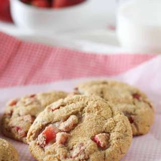 - Use your hands to form the cookies into smooth balls. Press the remaining ¼ cup white chocolate chips and ¼ cup dried strawberries into the tops of the cookies.