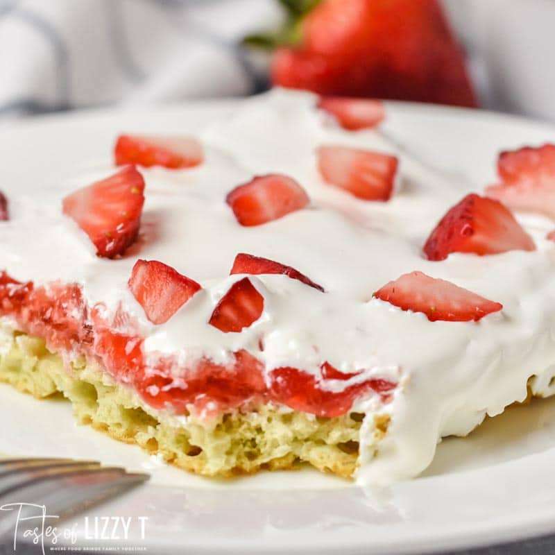 Light, airy and delicious this Strawberry Chiffon Sheet Cake is a fun, easy Summertime treat that is perfect to bring to your family get togethers!