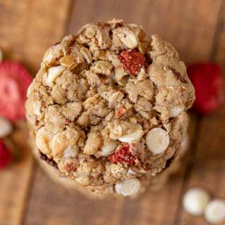 These decadent chocolate cookies are soft, chewy, and loaded with chocolate chips, chocolate chunks, and freeze-dried strawberries! The perfect dessert for Valentine's Day, Mother's Day, or any day!