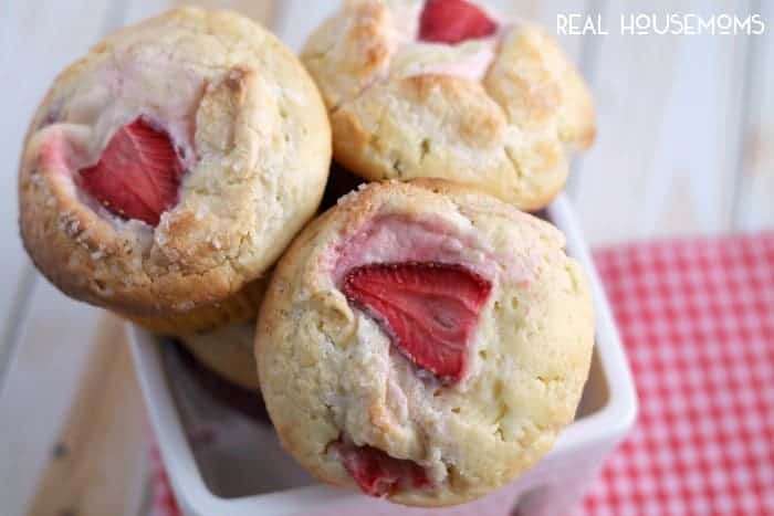 Sweet strawberries & tart lemon come together in this creamy Strawberry Lemon Cream Cheese Muffins.