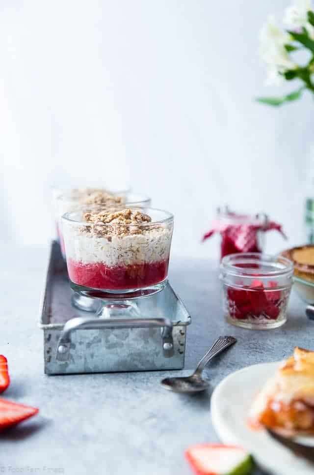 These easy, gluten free Strawberry Rhubarb Vegan Overnight Oats taste like waking up to a healthy slice of pie for breakfast!