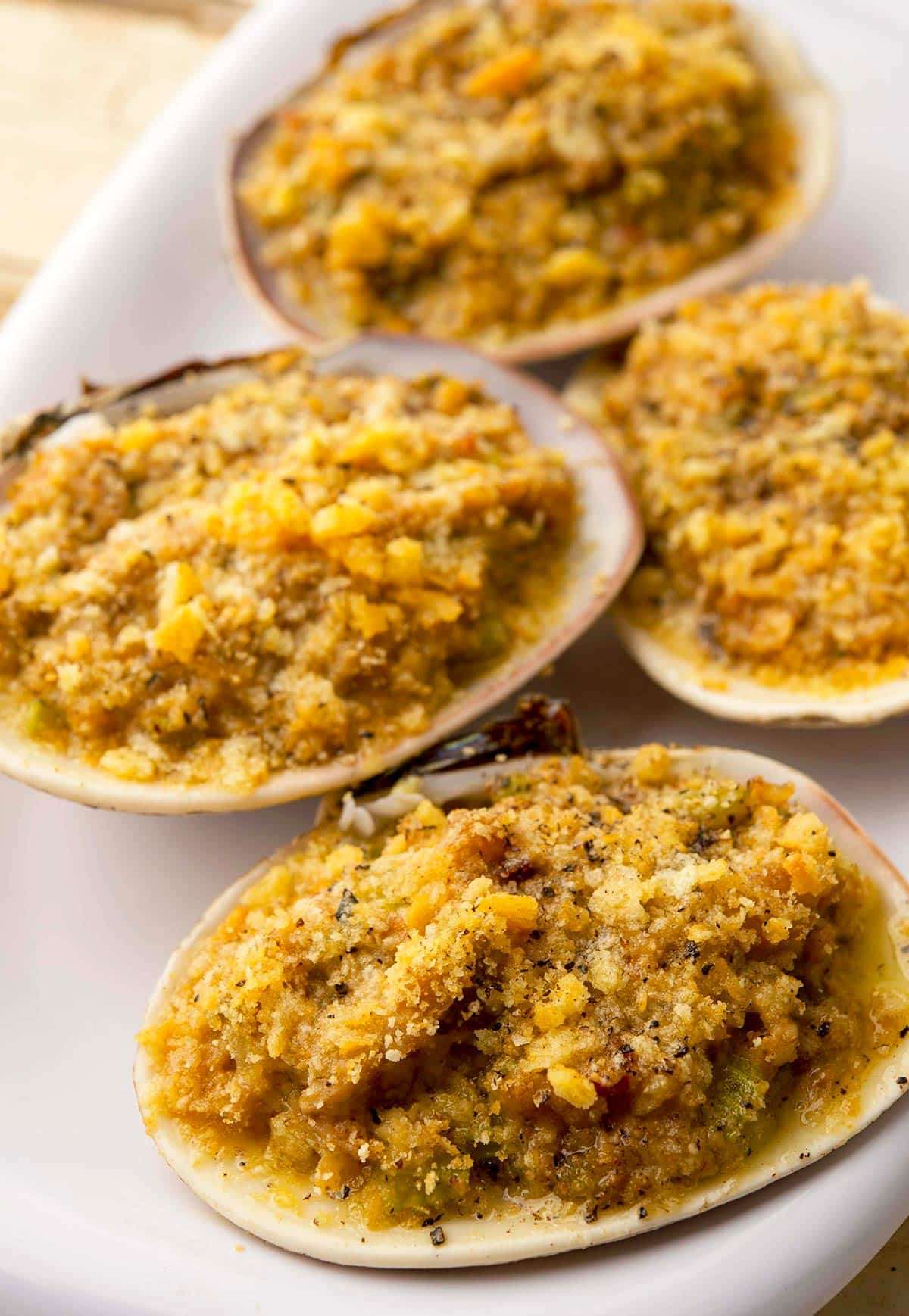 These are baked, stuffed clams served either in their shell or a ramekin. It's a fantastic appetizer or starter for a seafood feast.